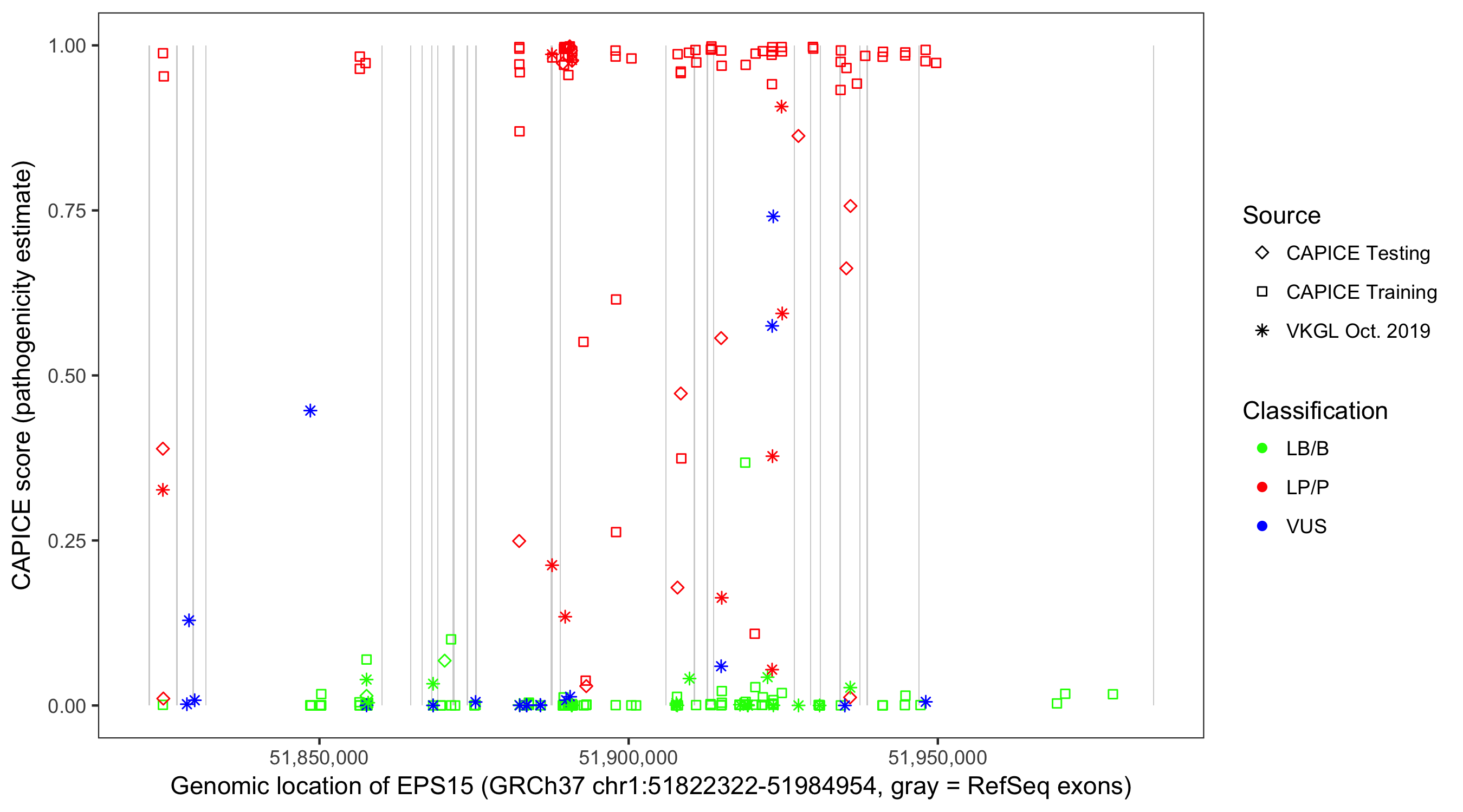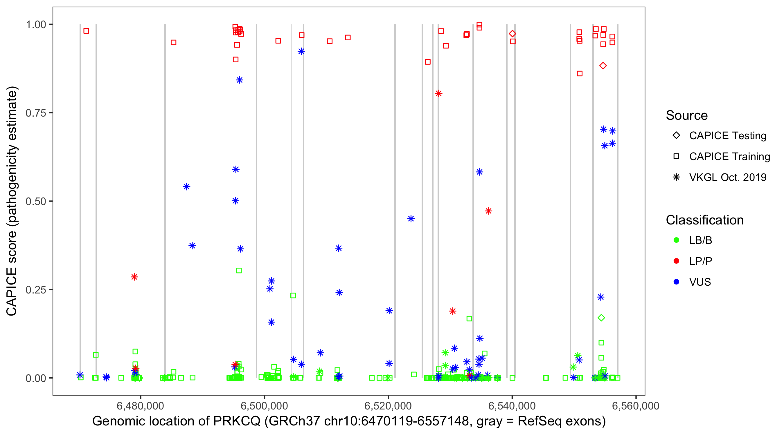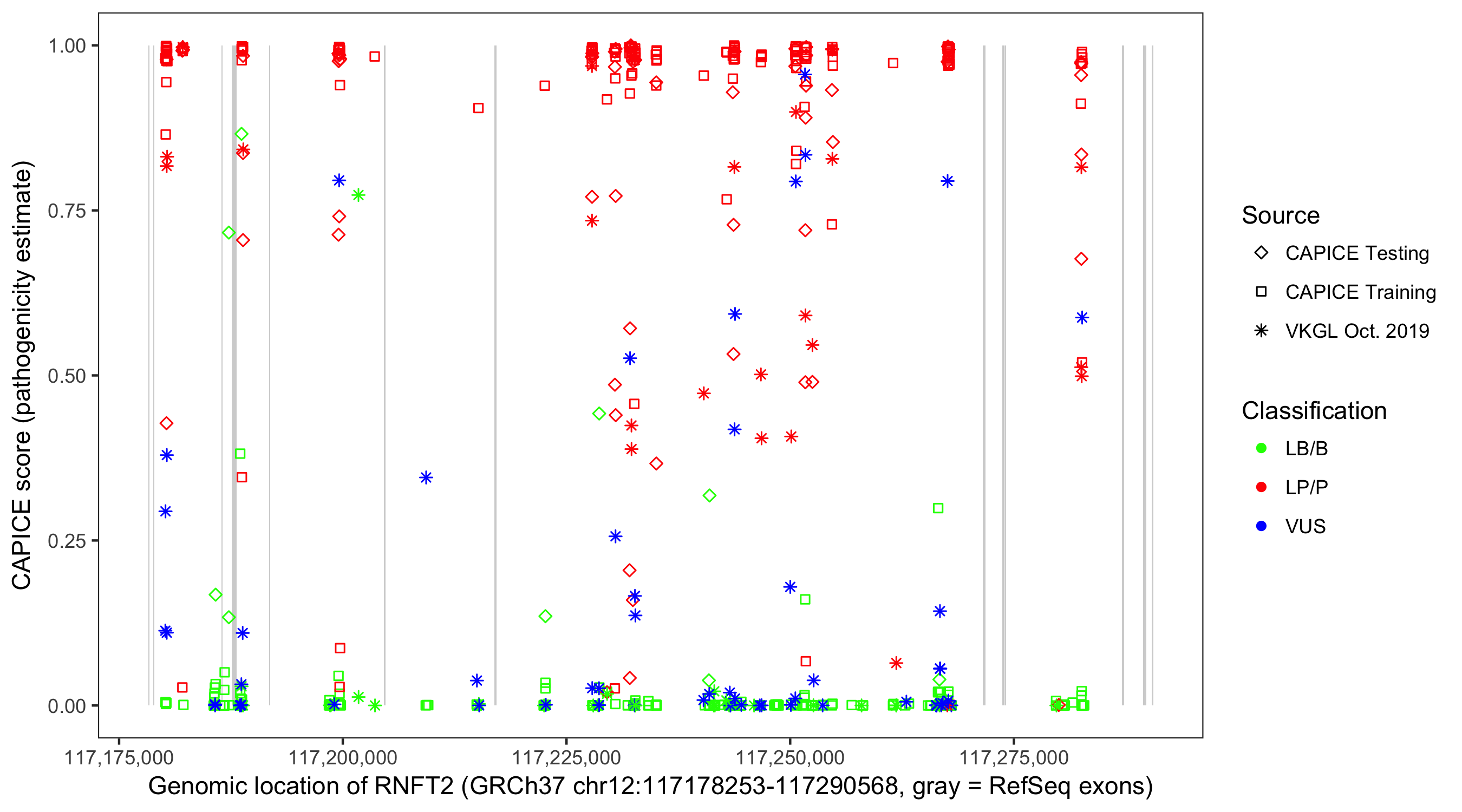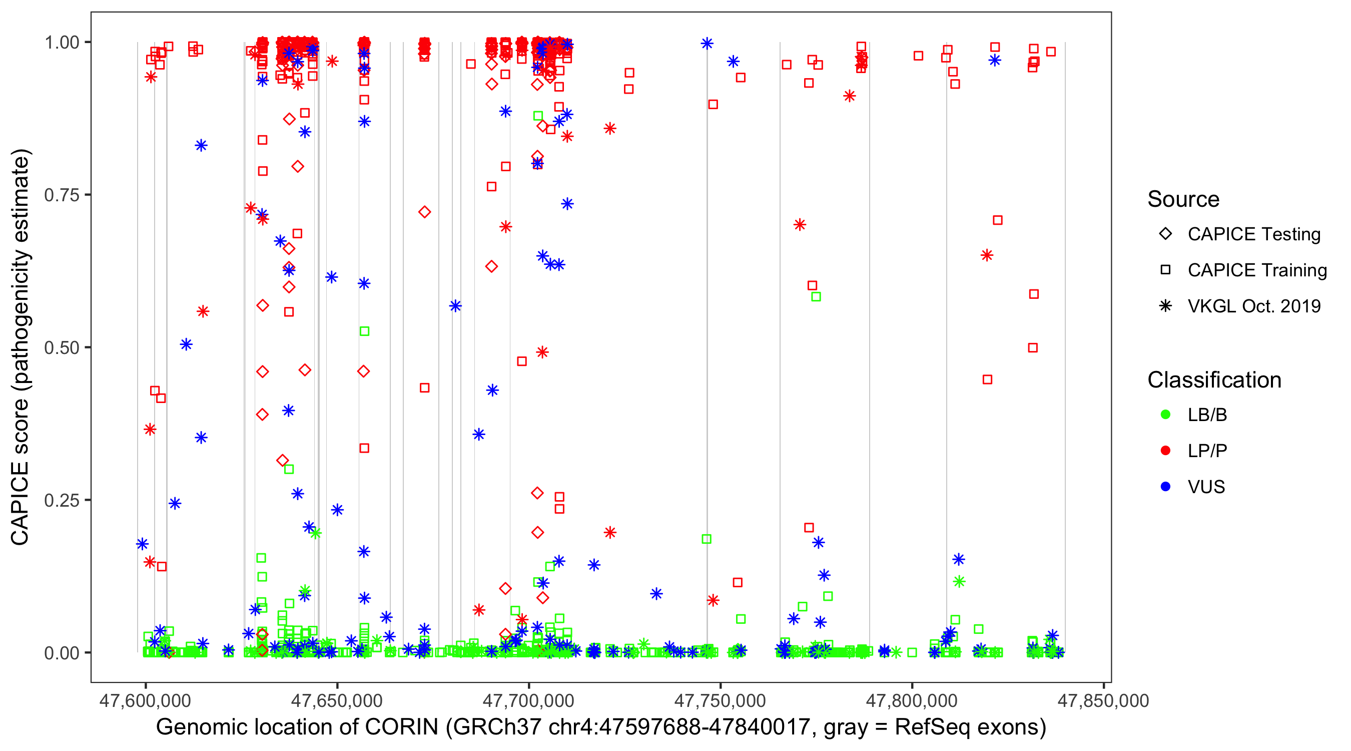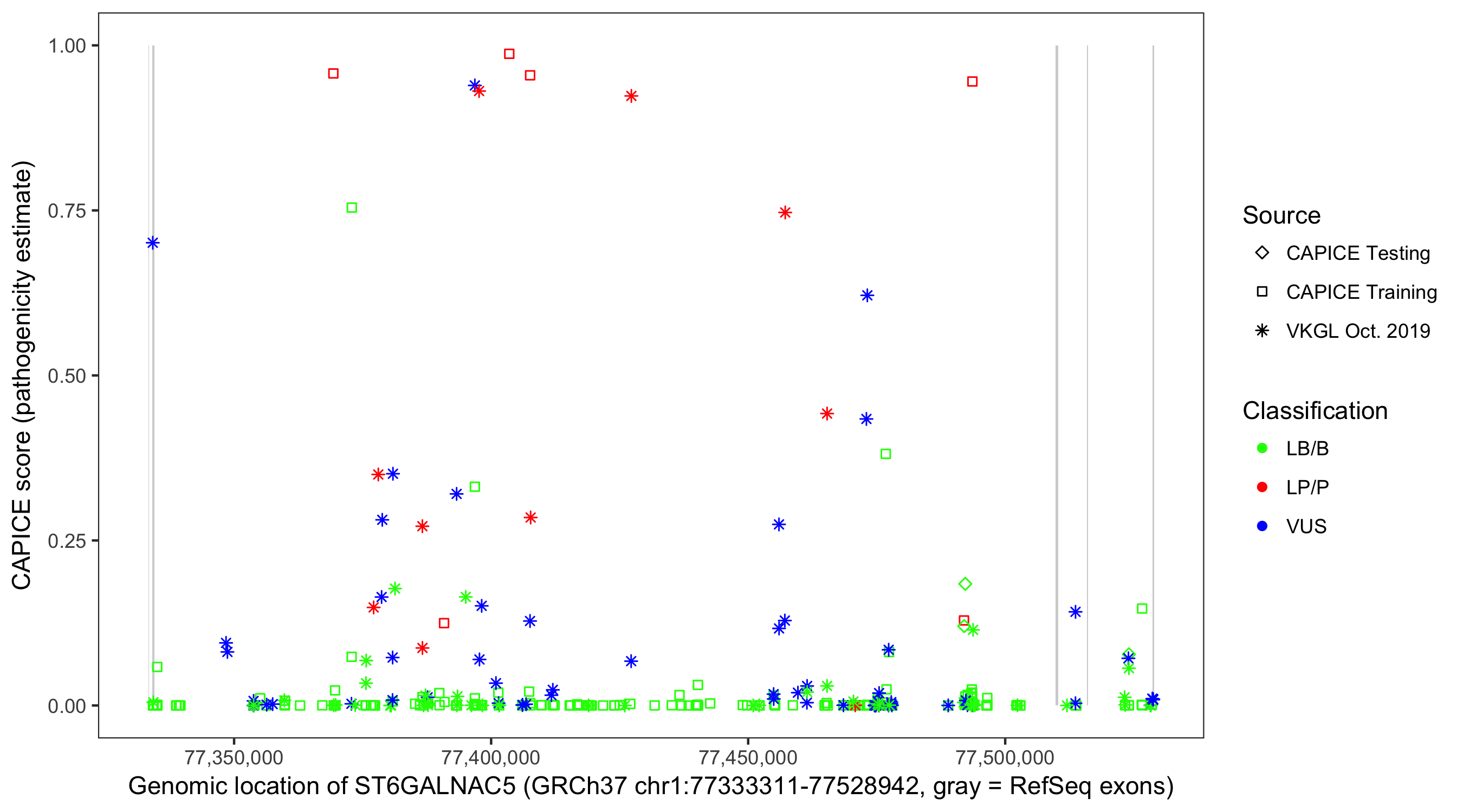 Shown are CAPICE train/test variants plus VKGL Oct 2019.