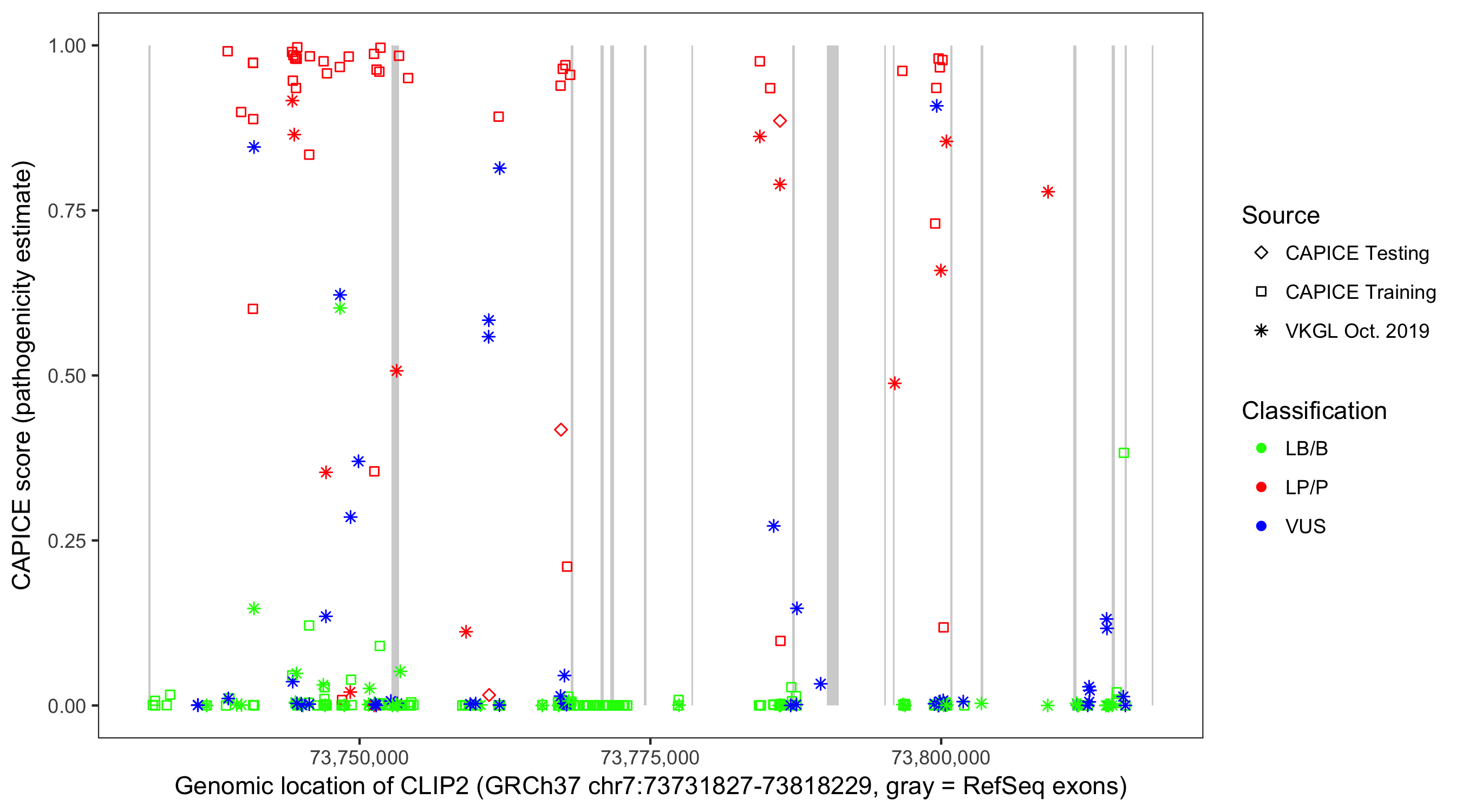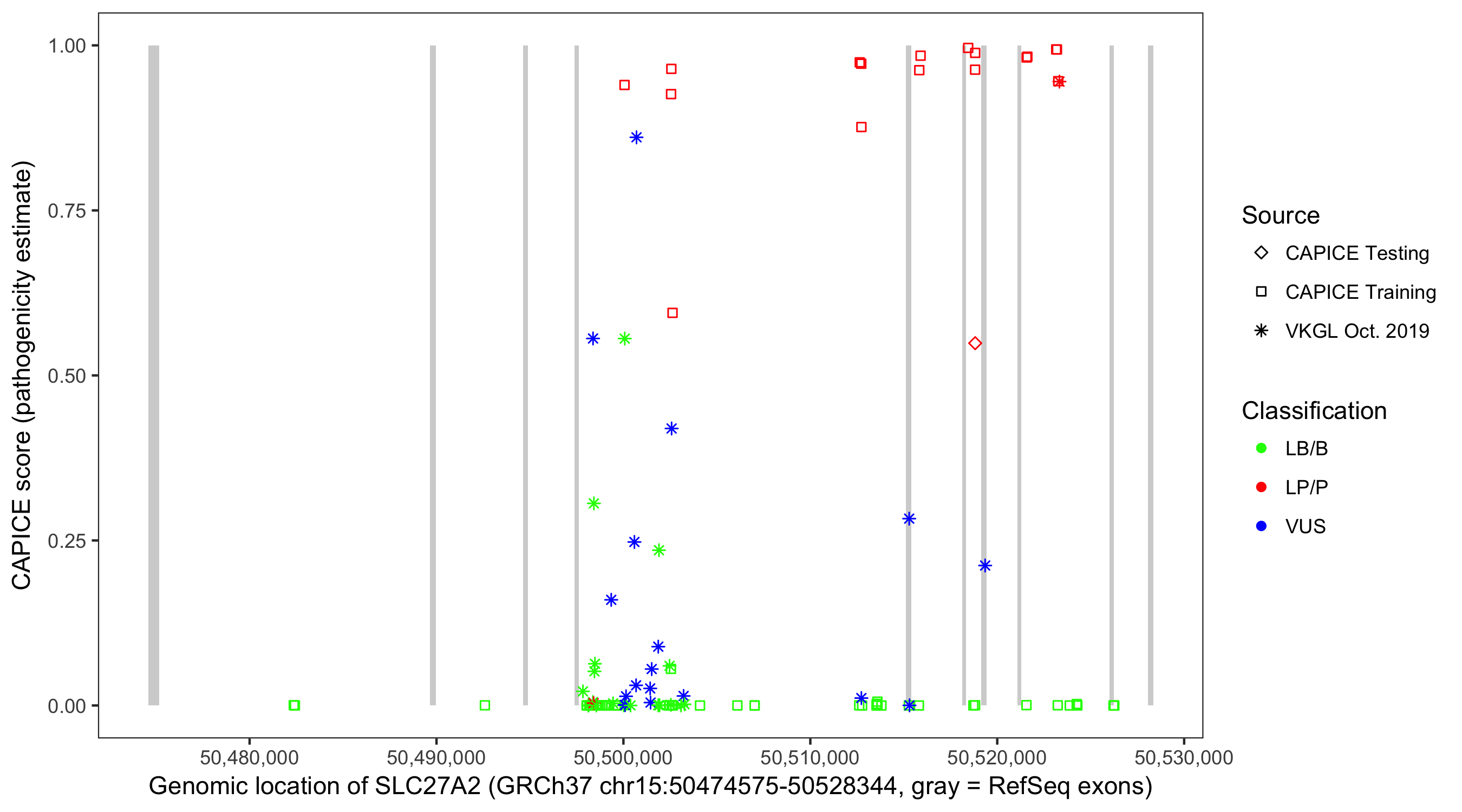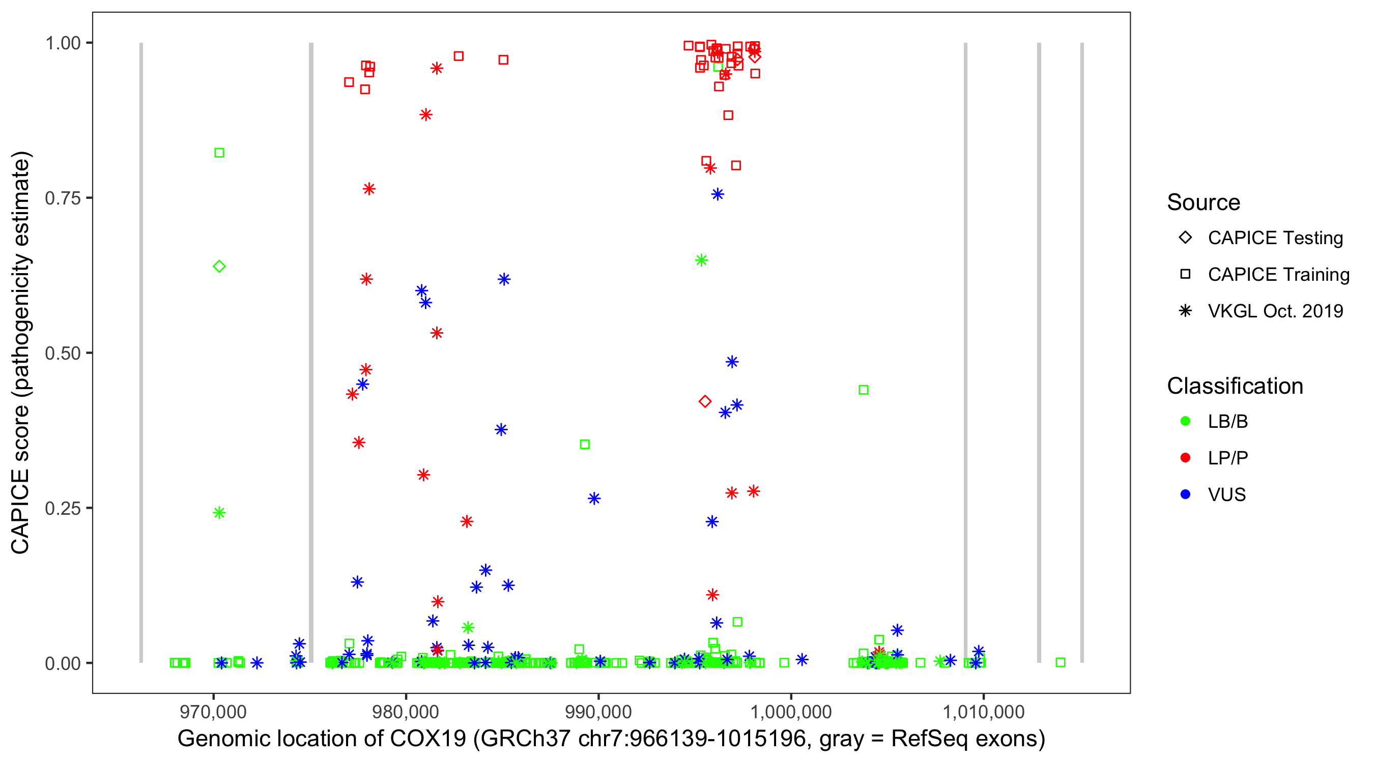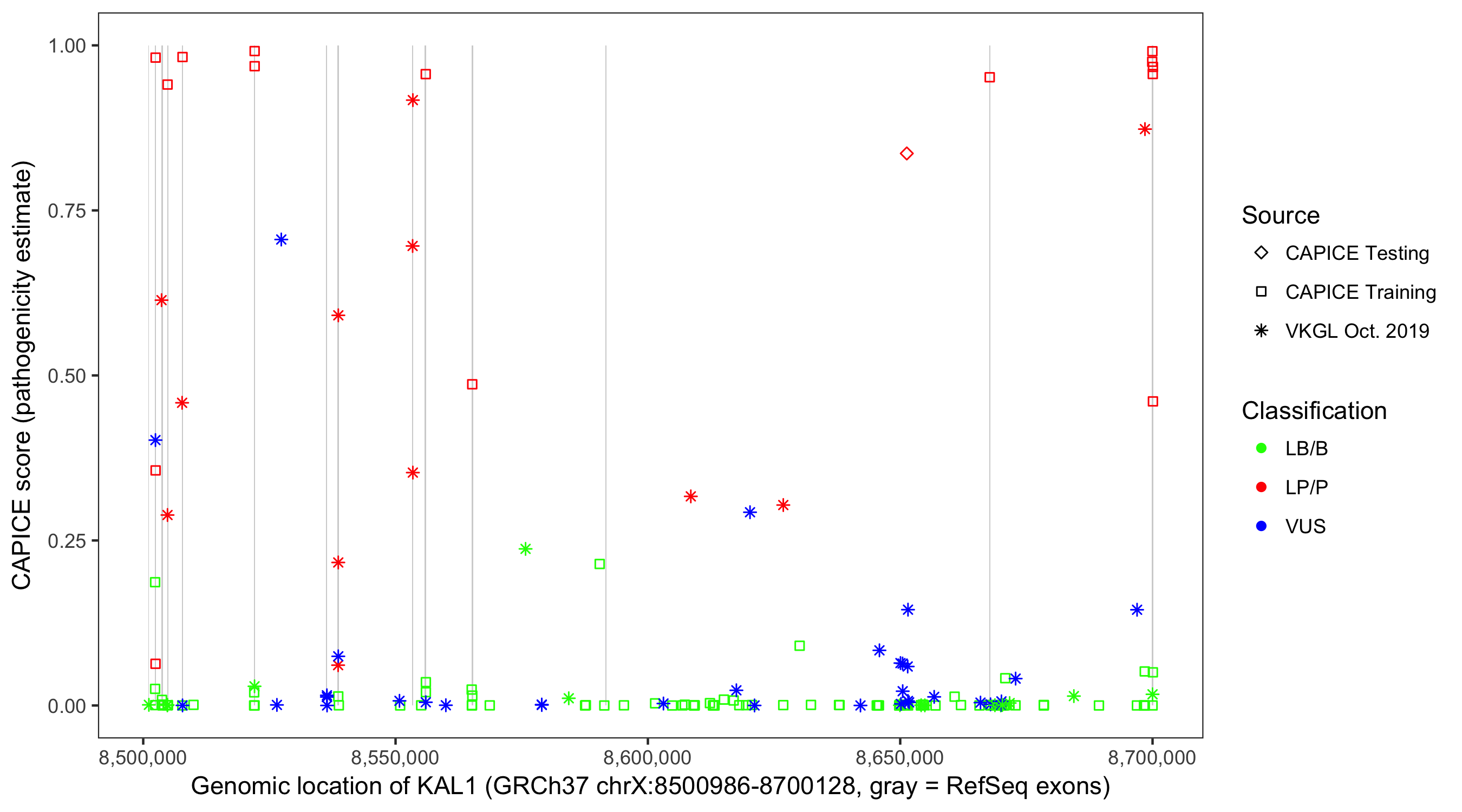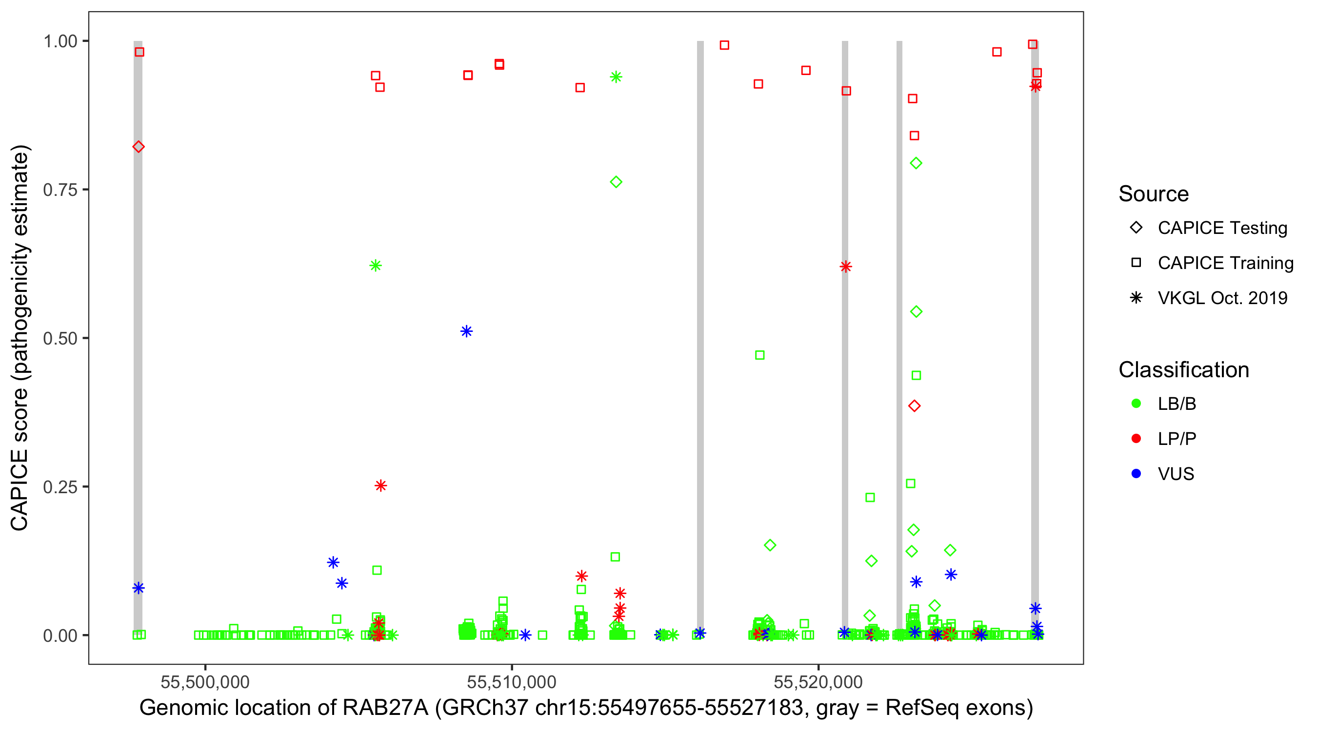 Shown are CAPICE train/test variants plus VKGL Oct 2019.