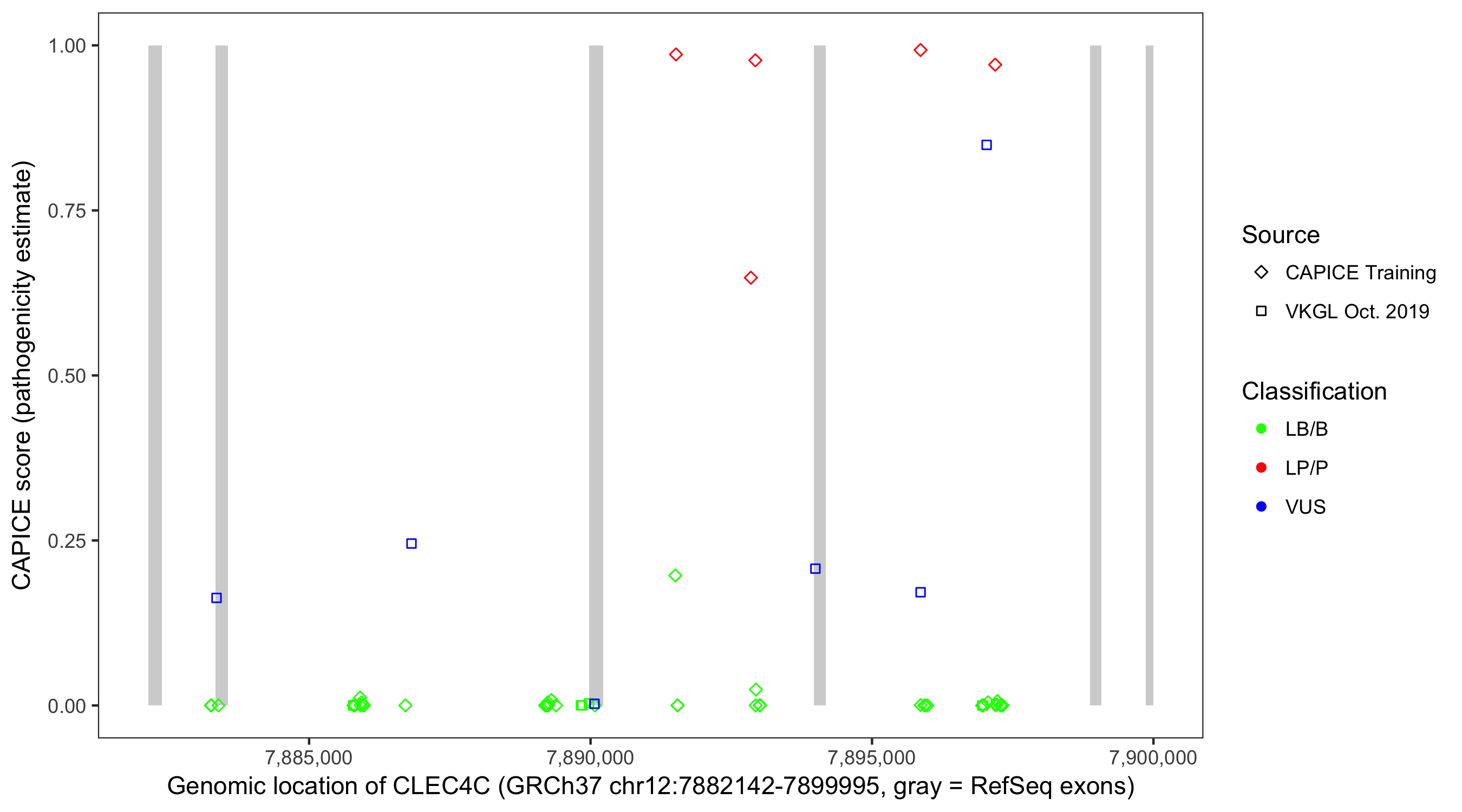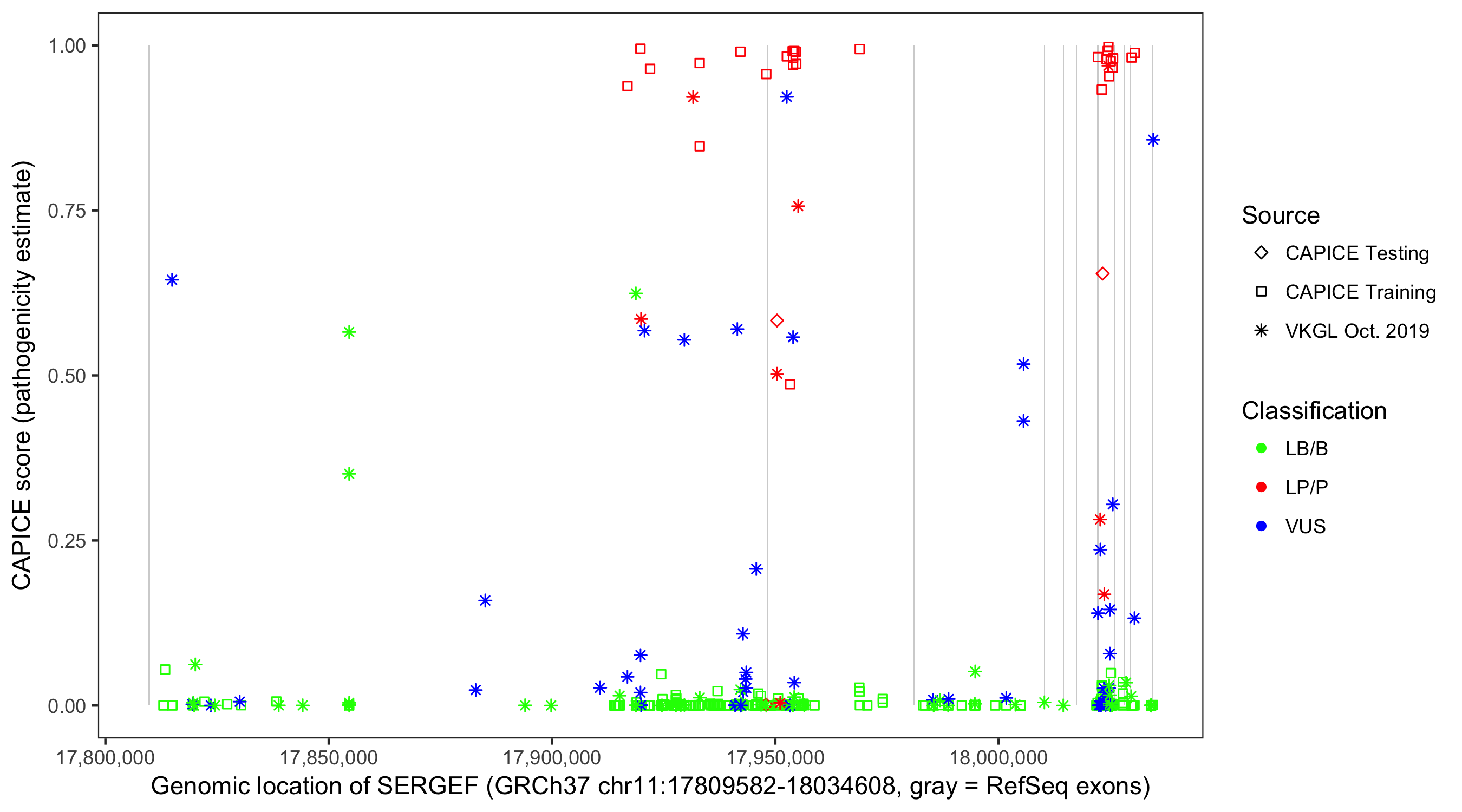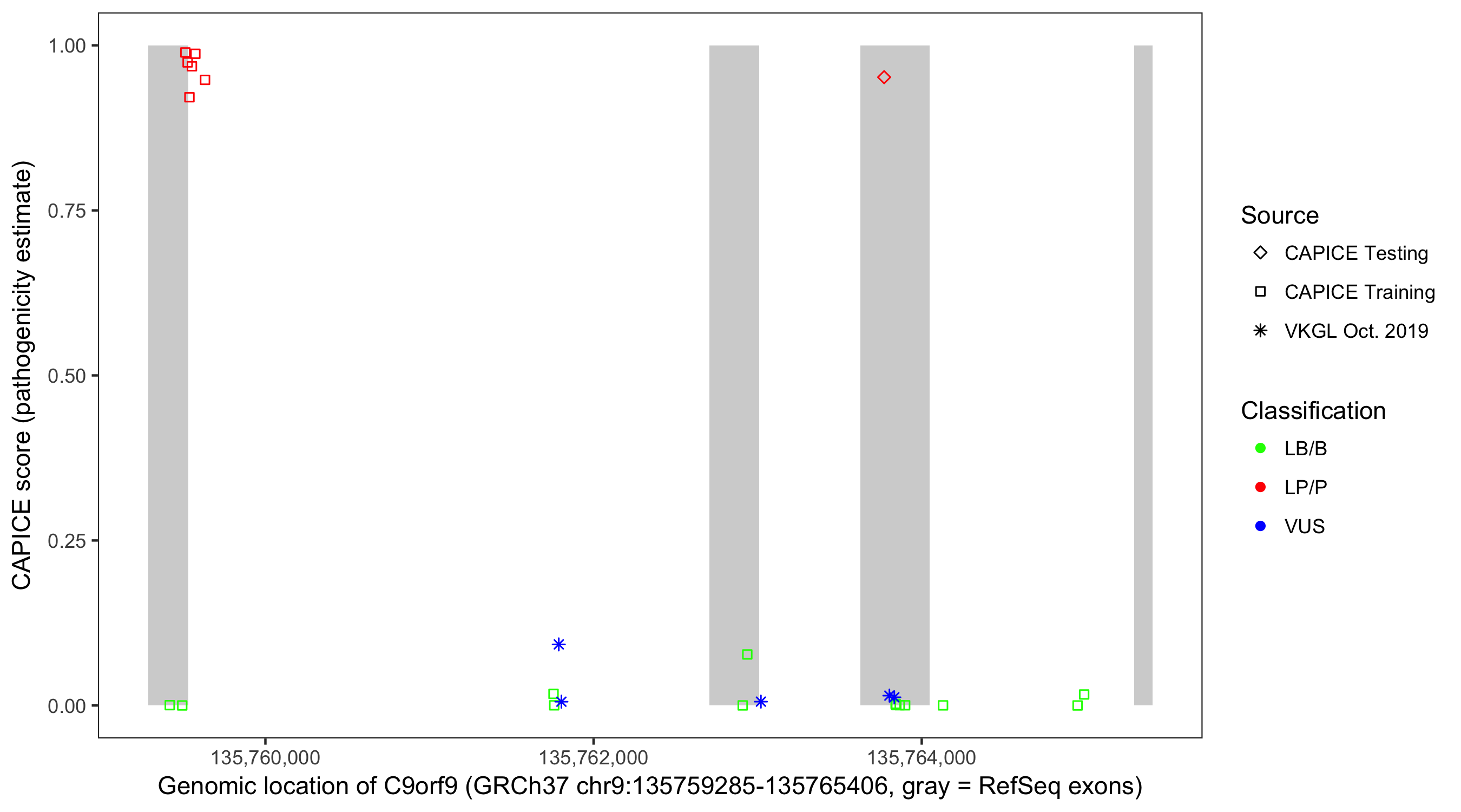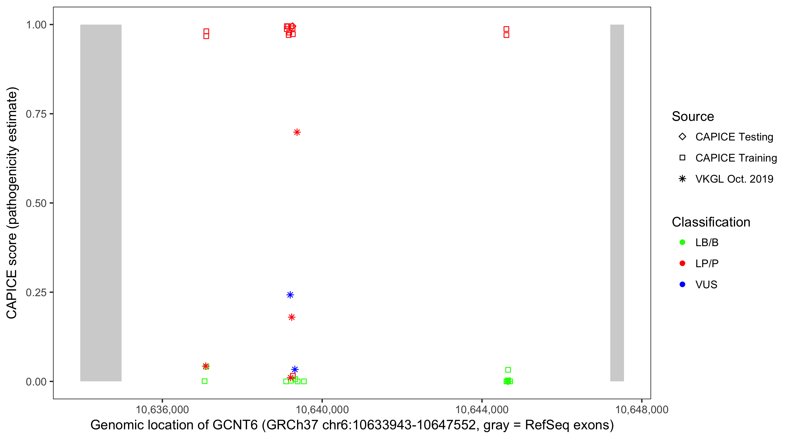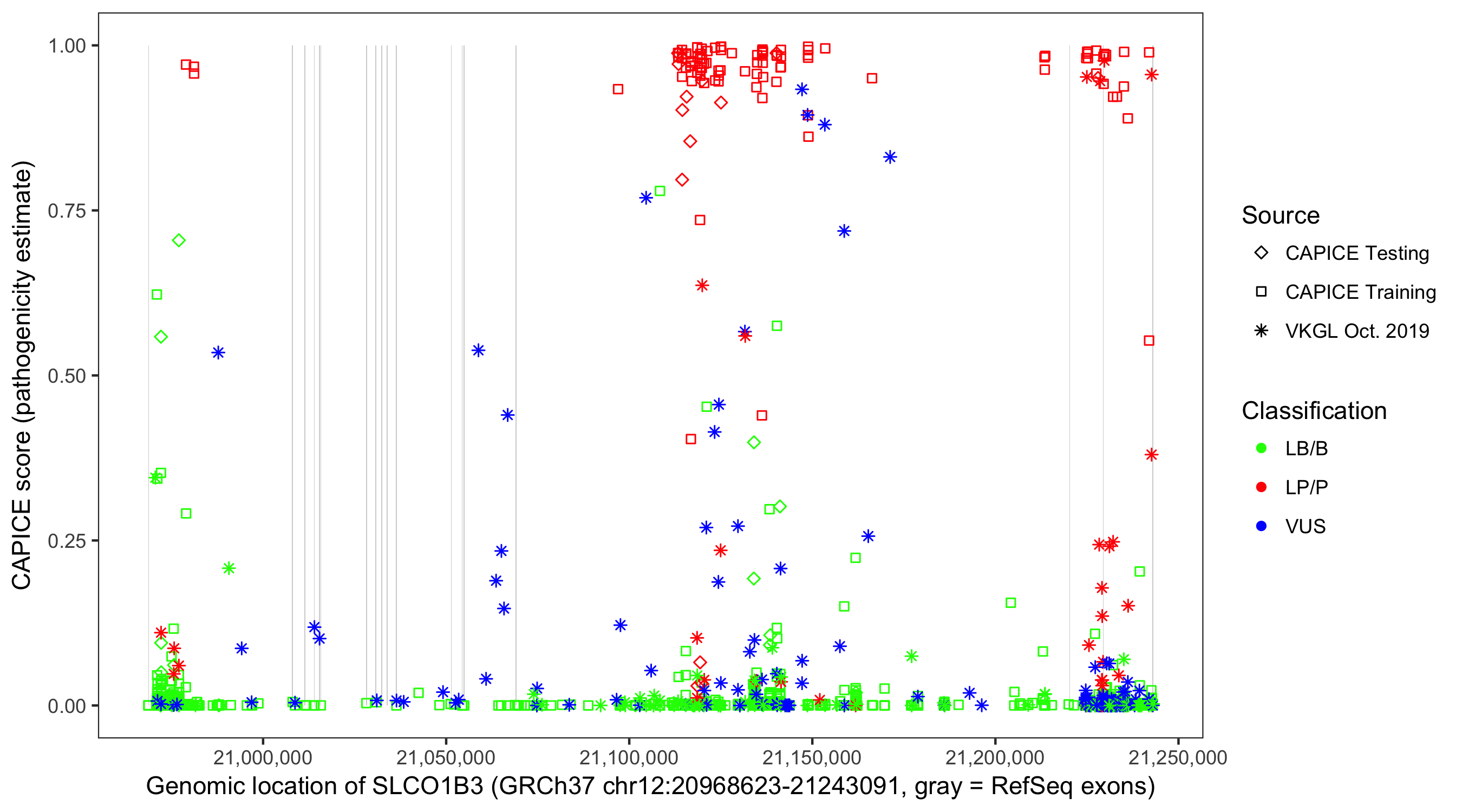 Shown are CAPICE train/test variants plus VKGL Oct 2019.