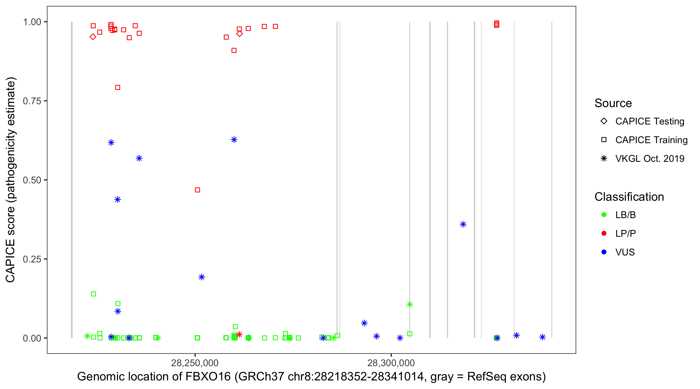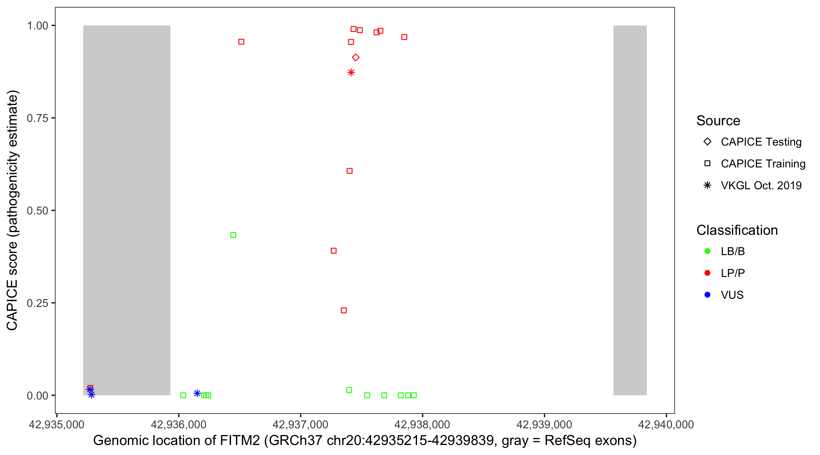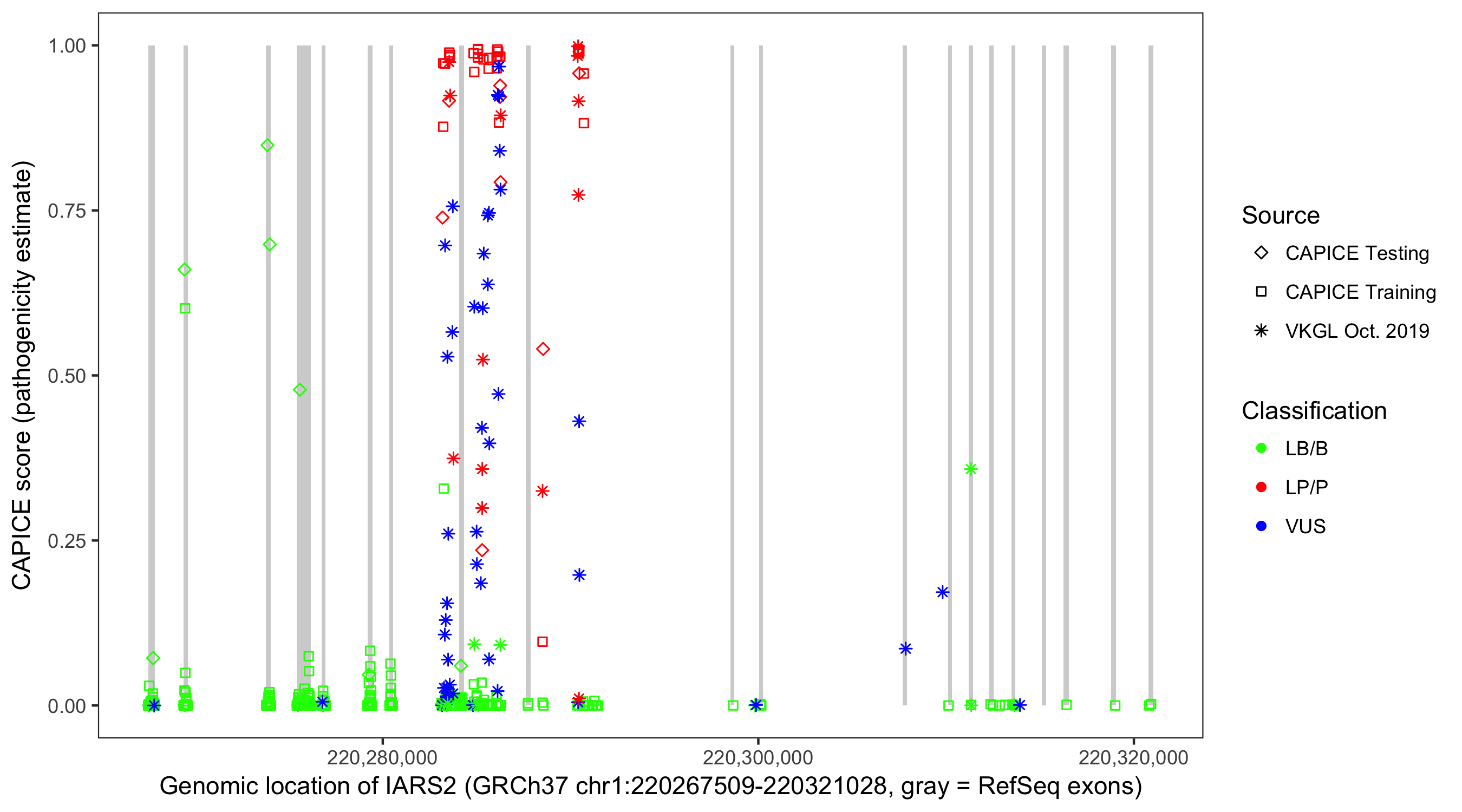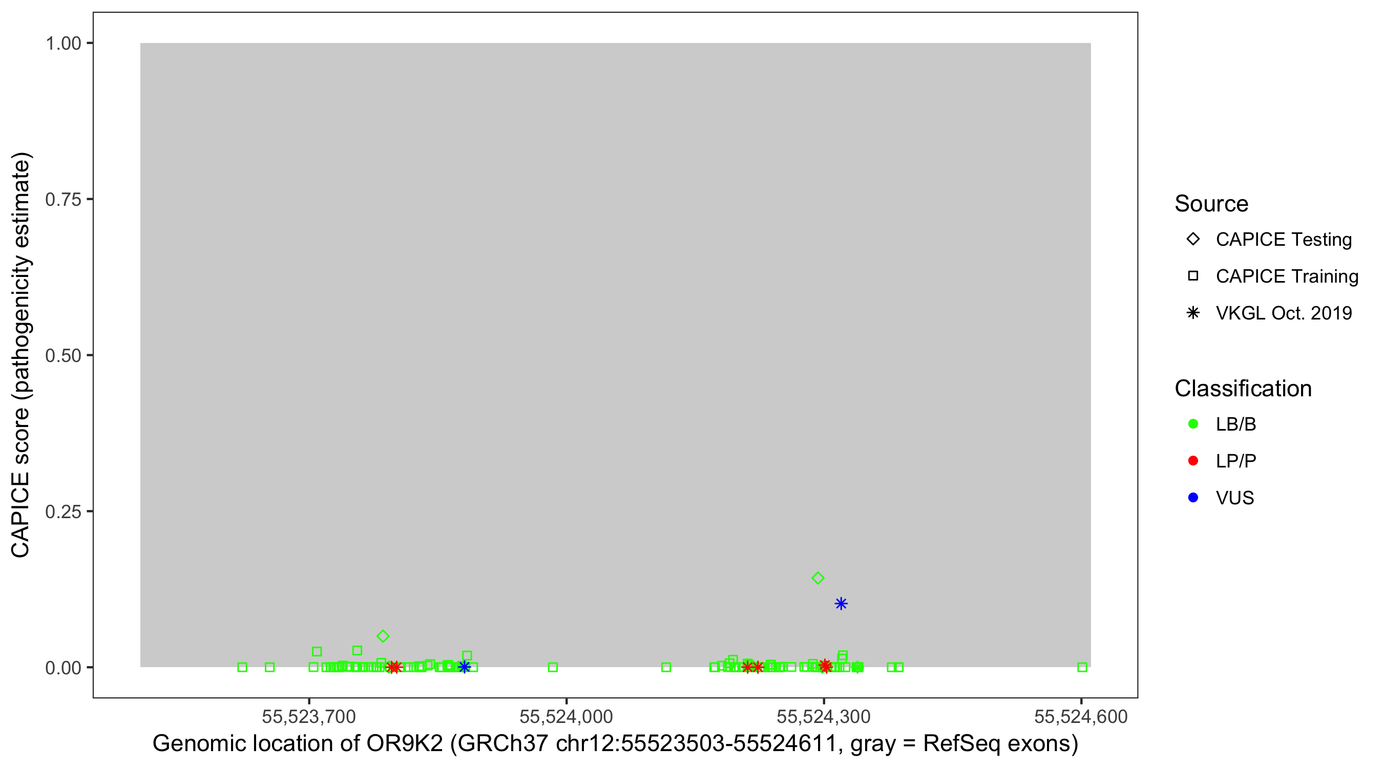 Shown are CAPICE train/test variants plus VKGL Oct 2019.