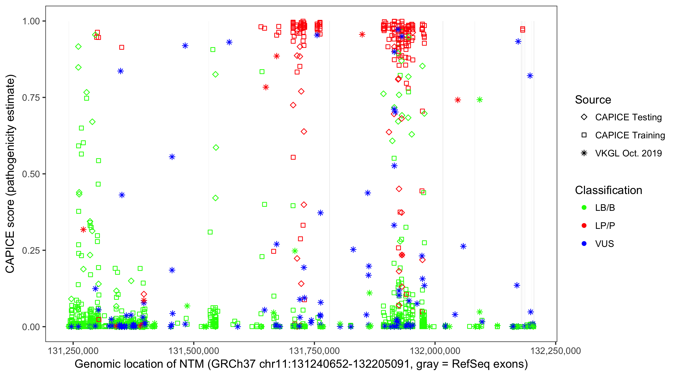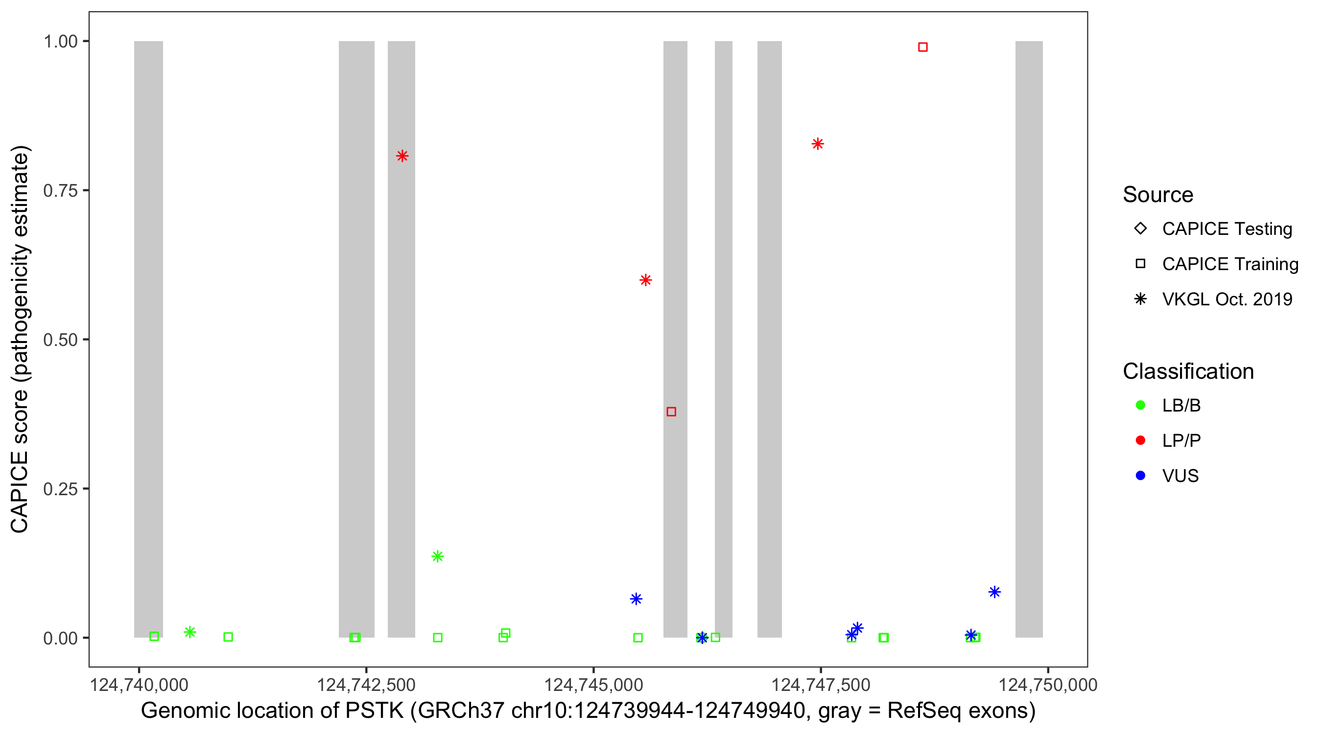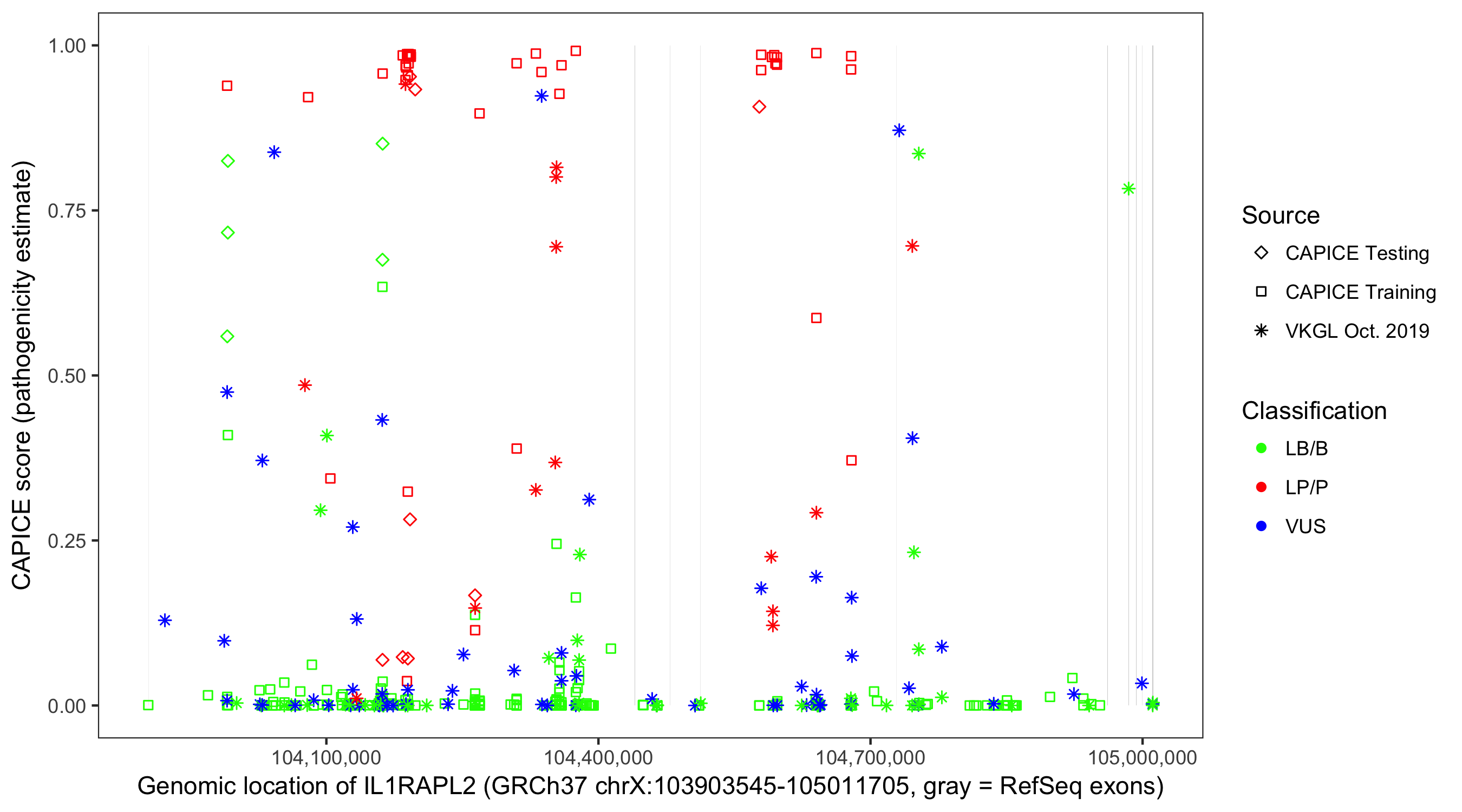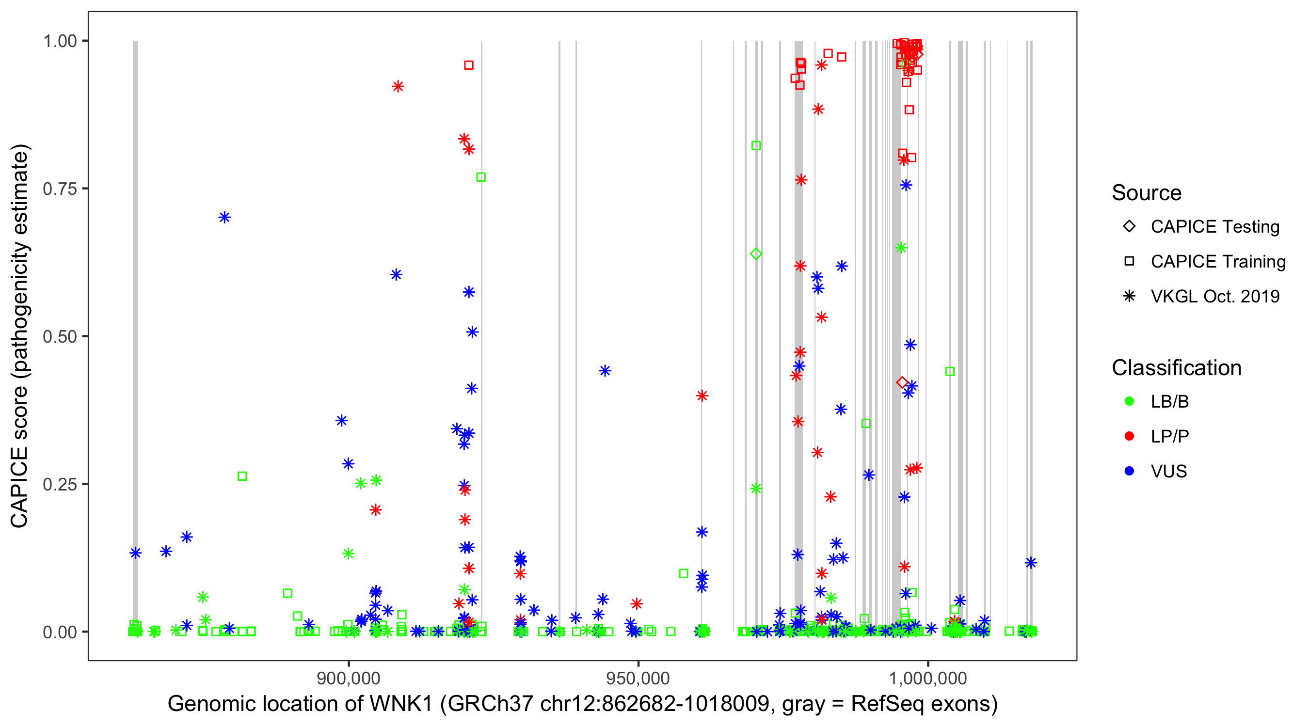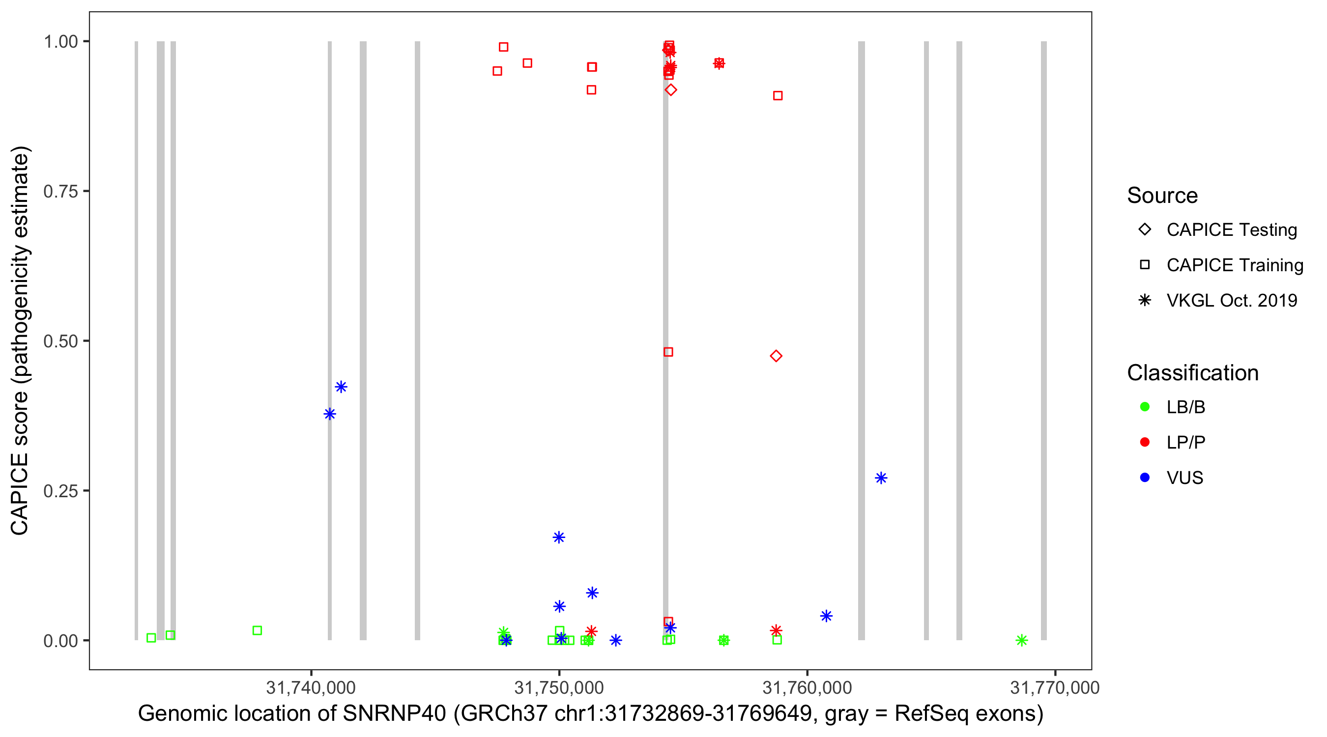 Shown are CAPICE train/test variants plus VKGL Oct 2019.