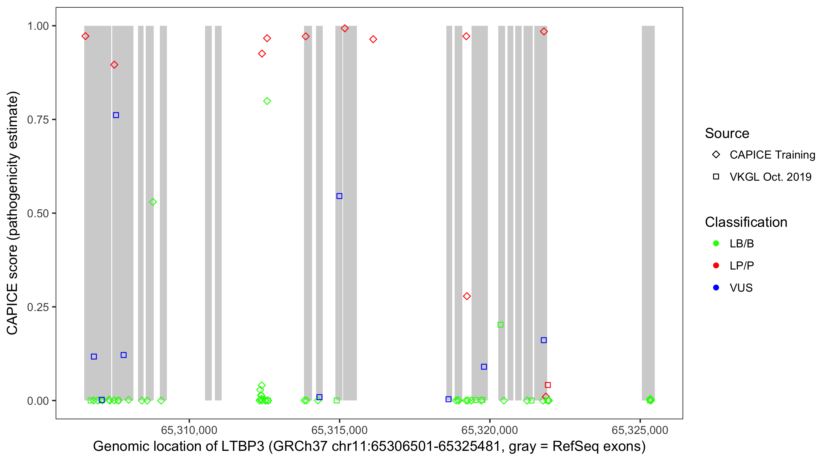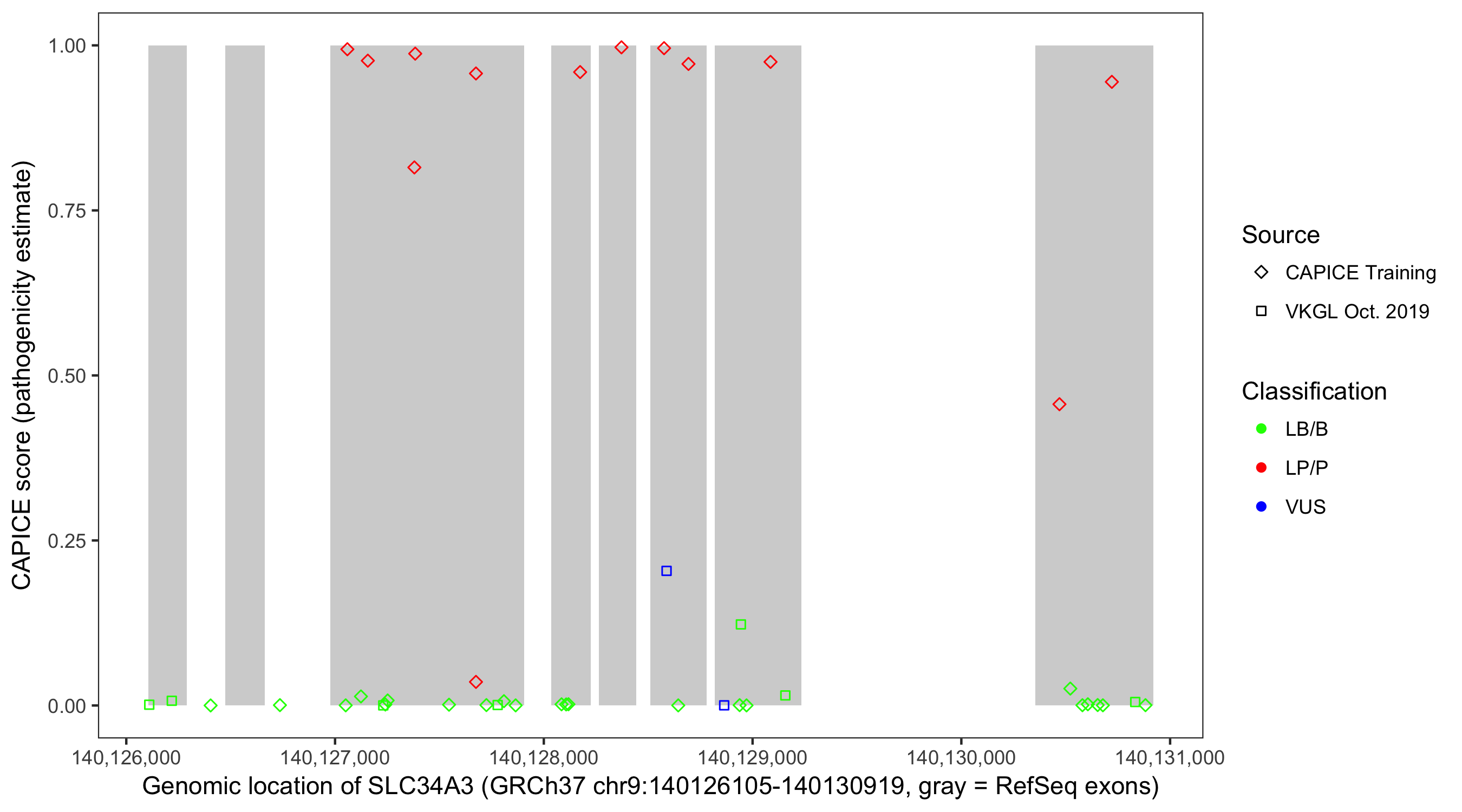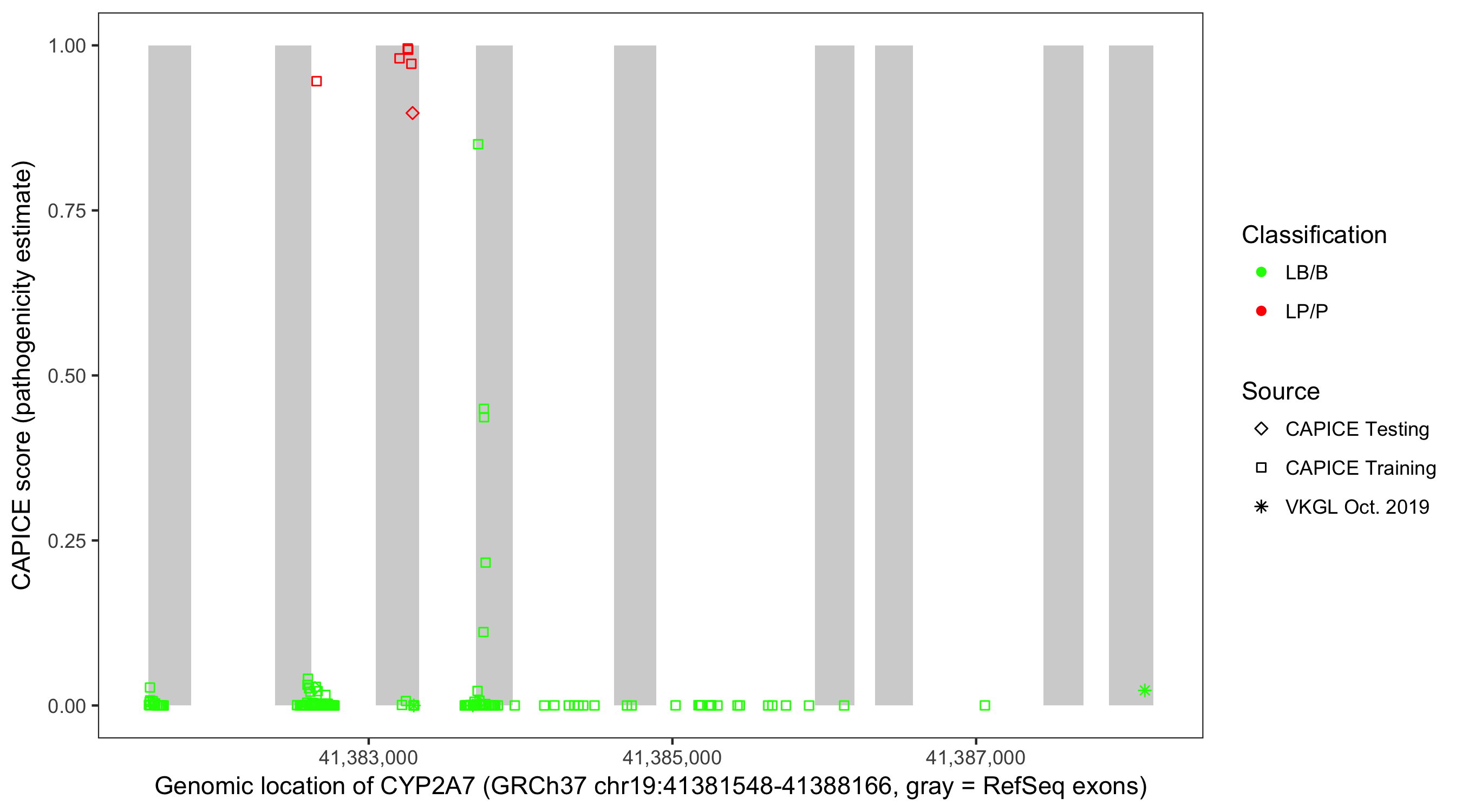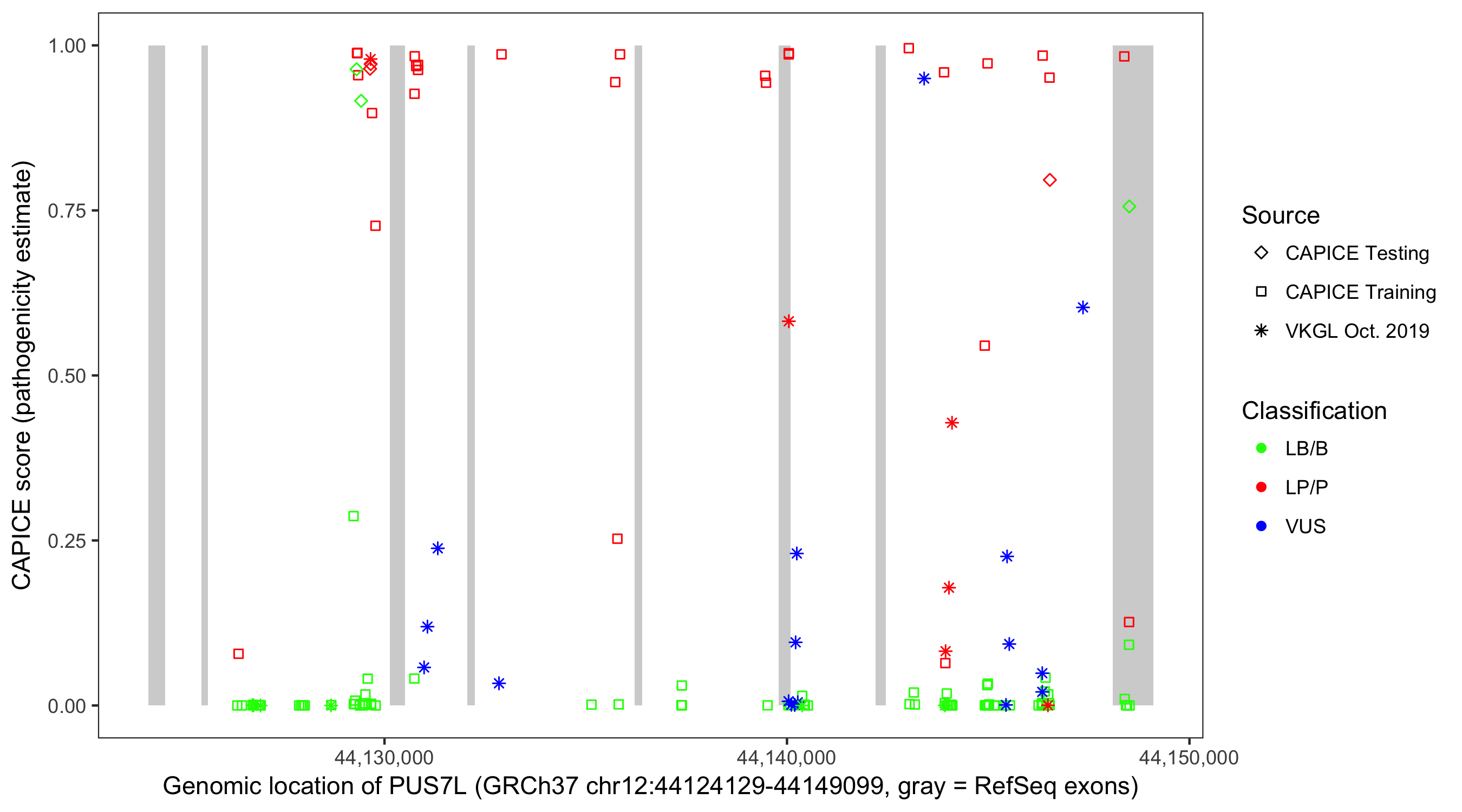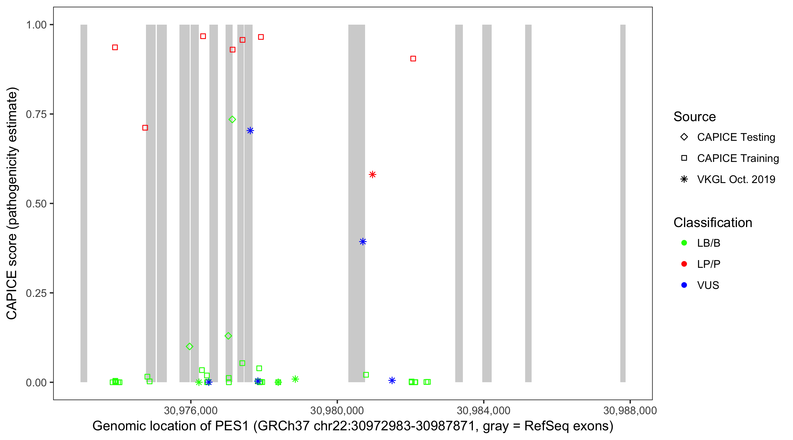 Shown are CAPICE train/test variants plus VKGL Oct 2019.