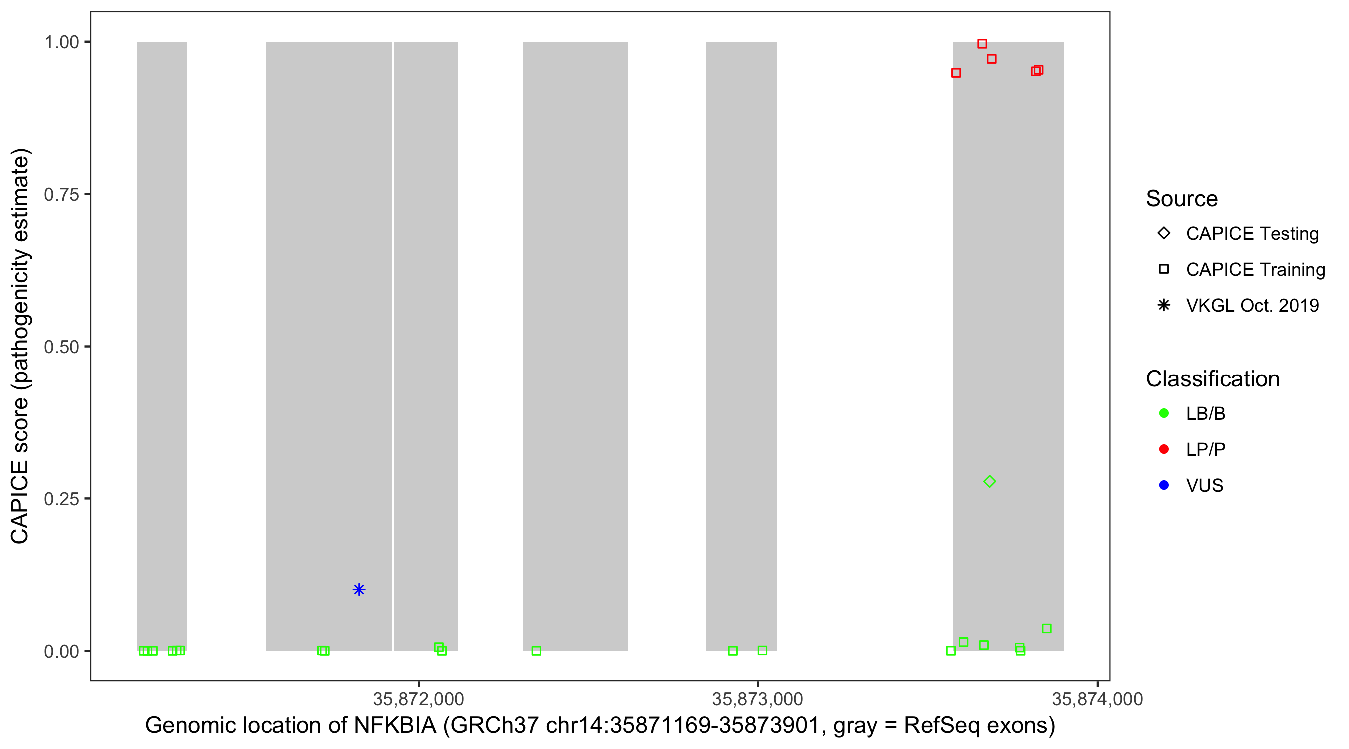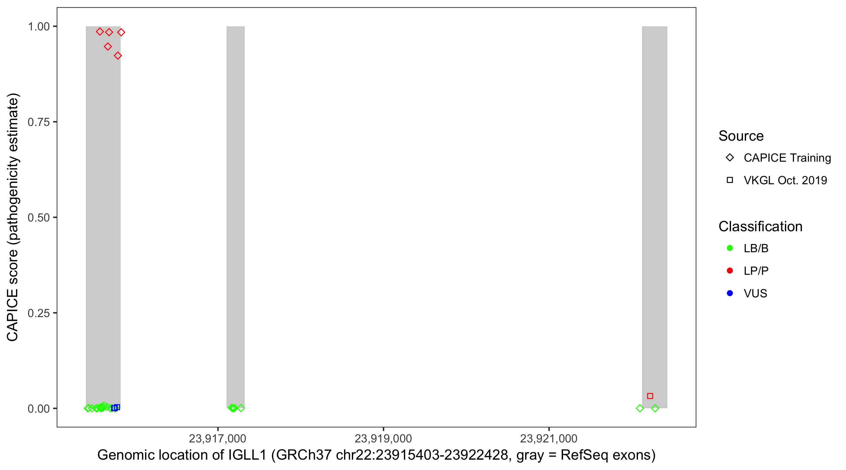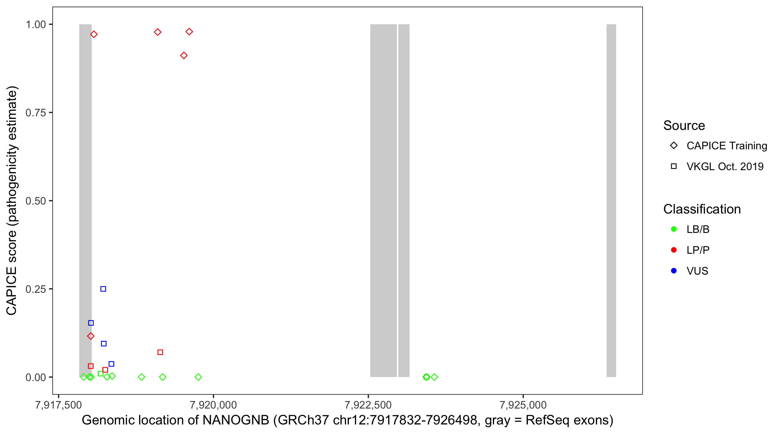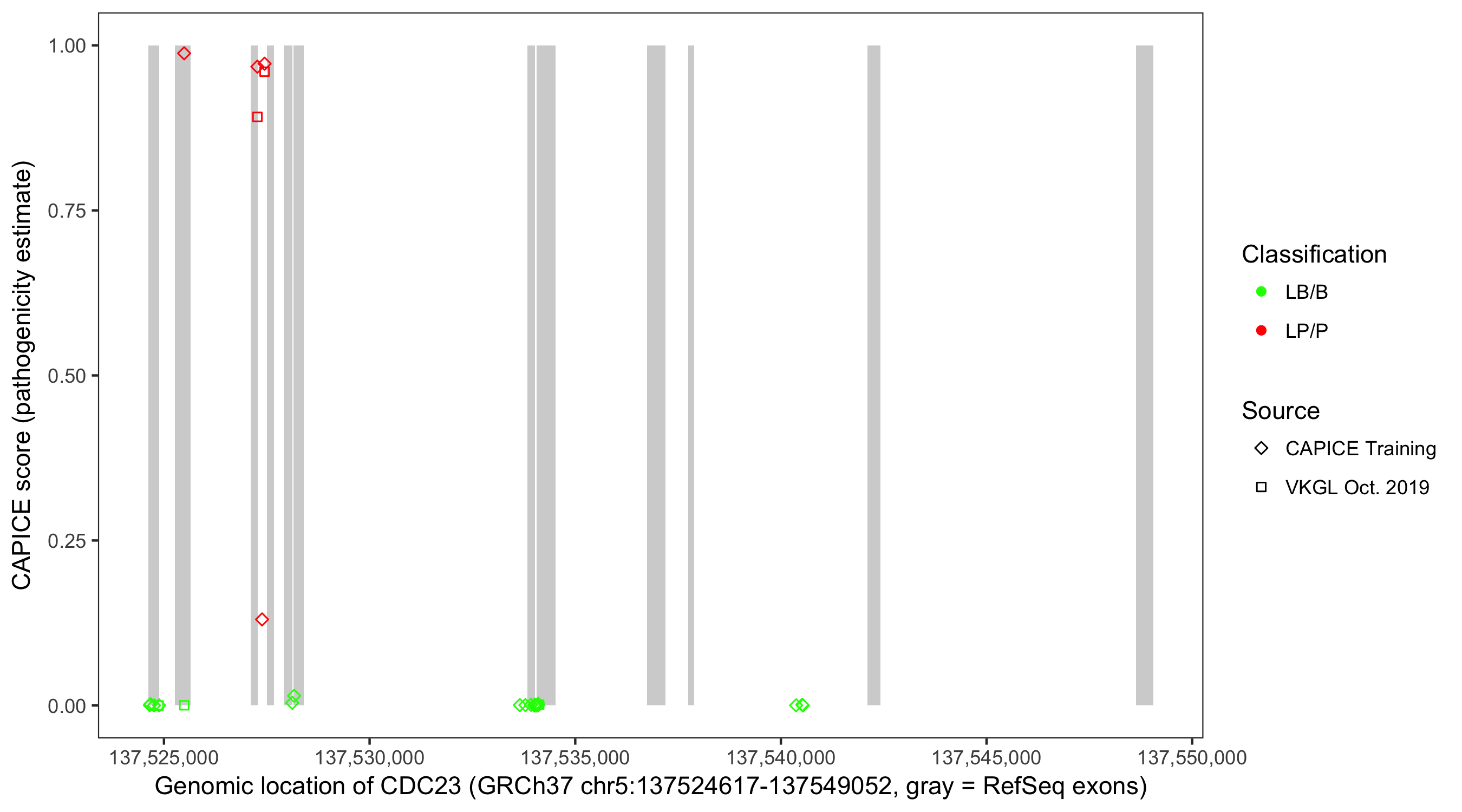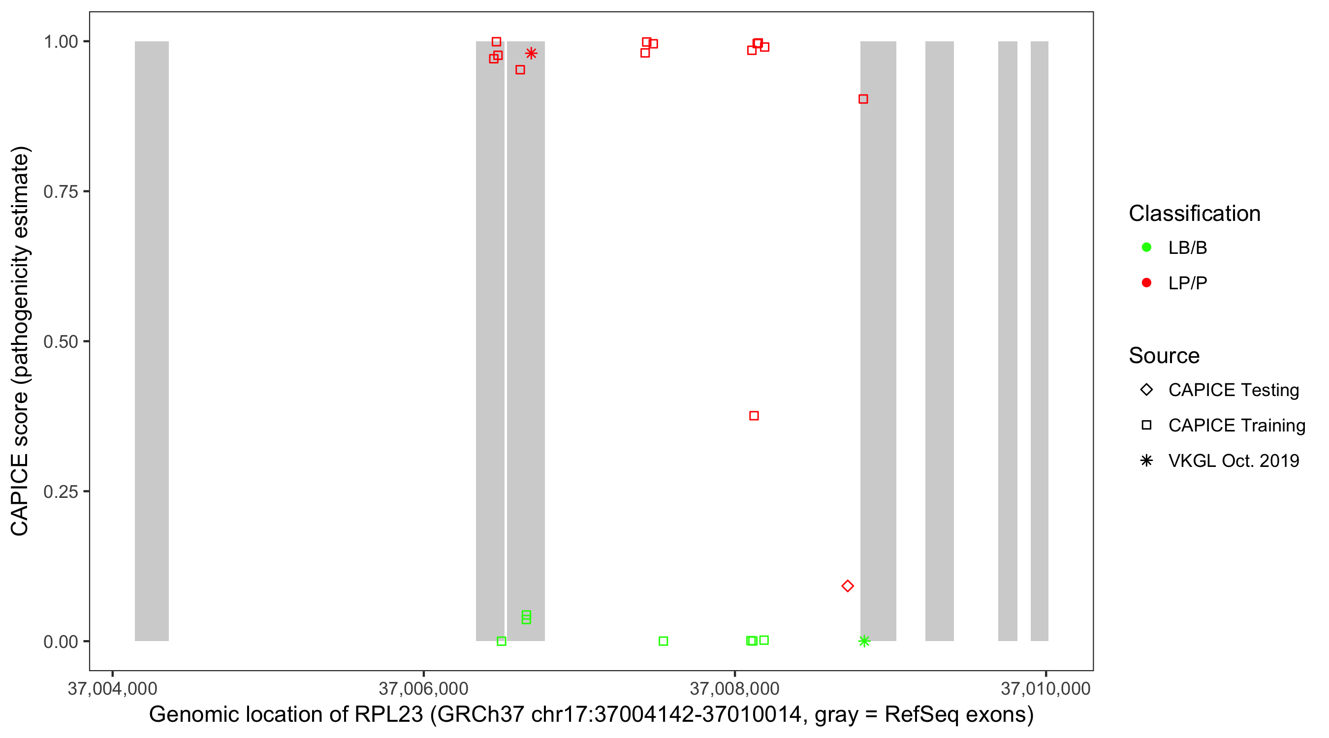 Shown are CAPICE train/test variants plus VKGL Oct 2019.