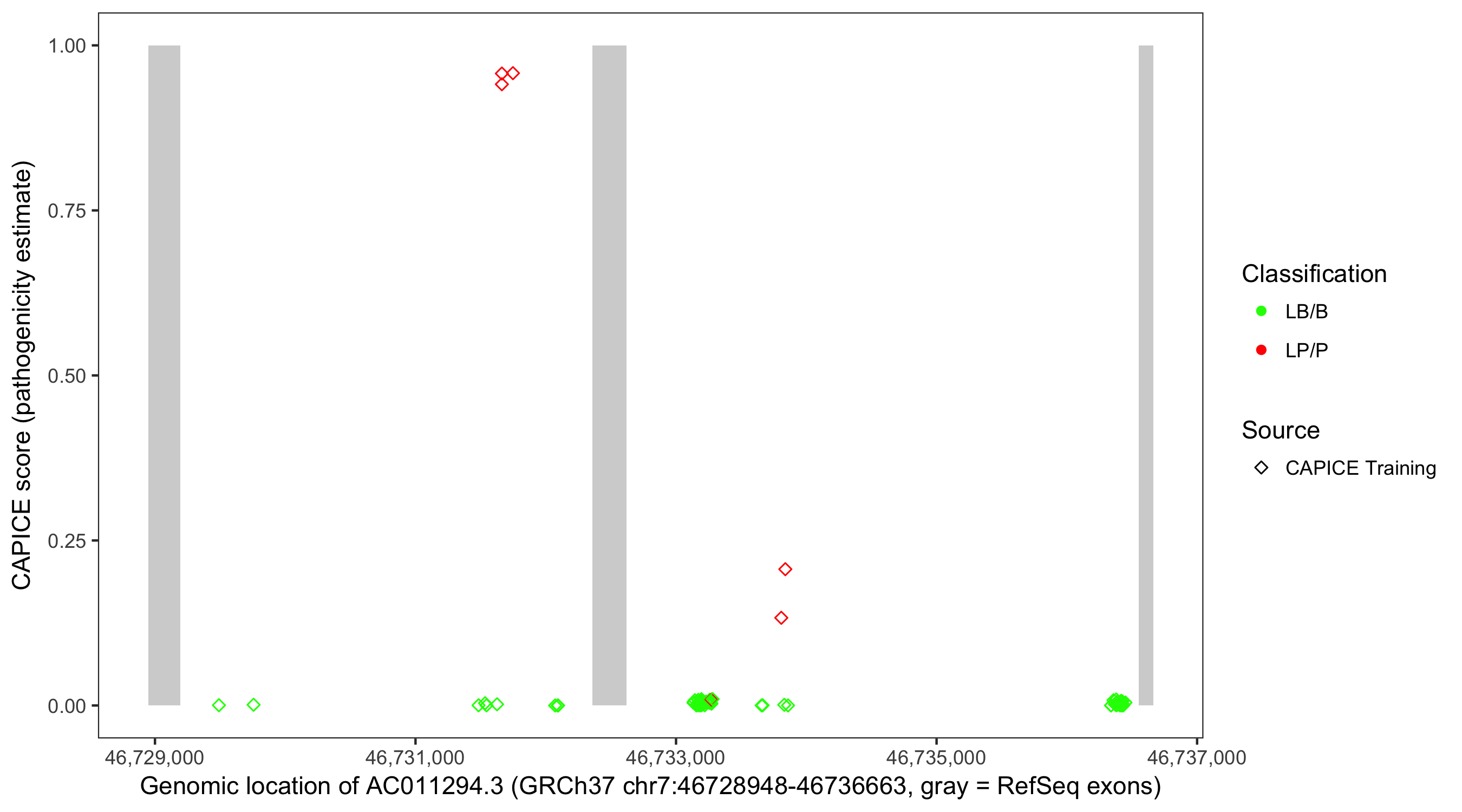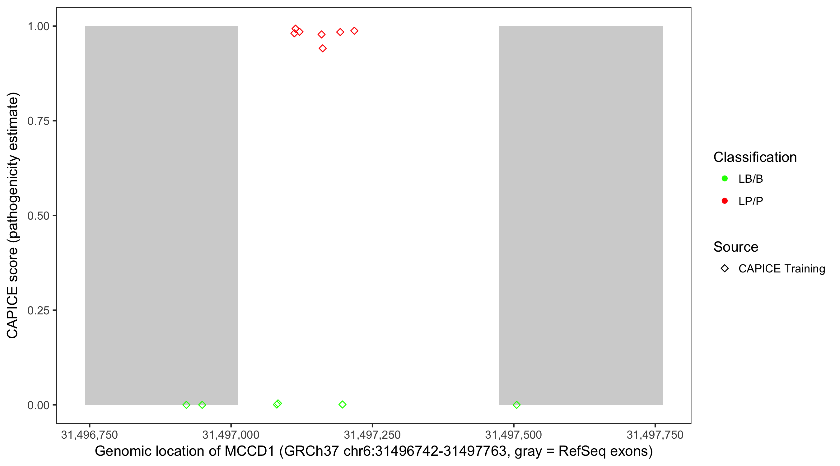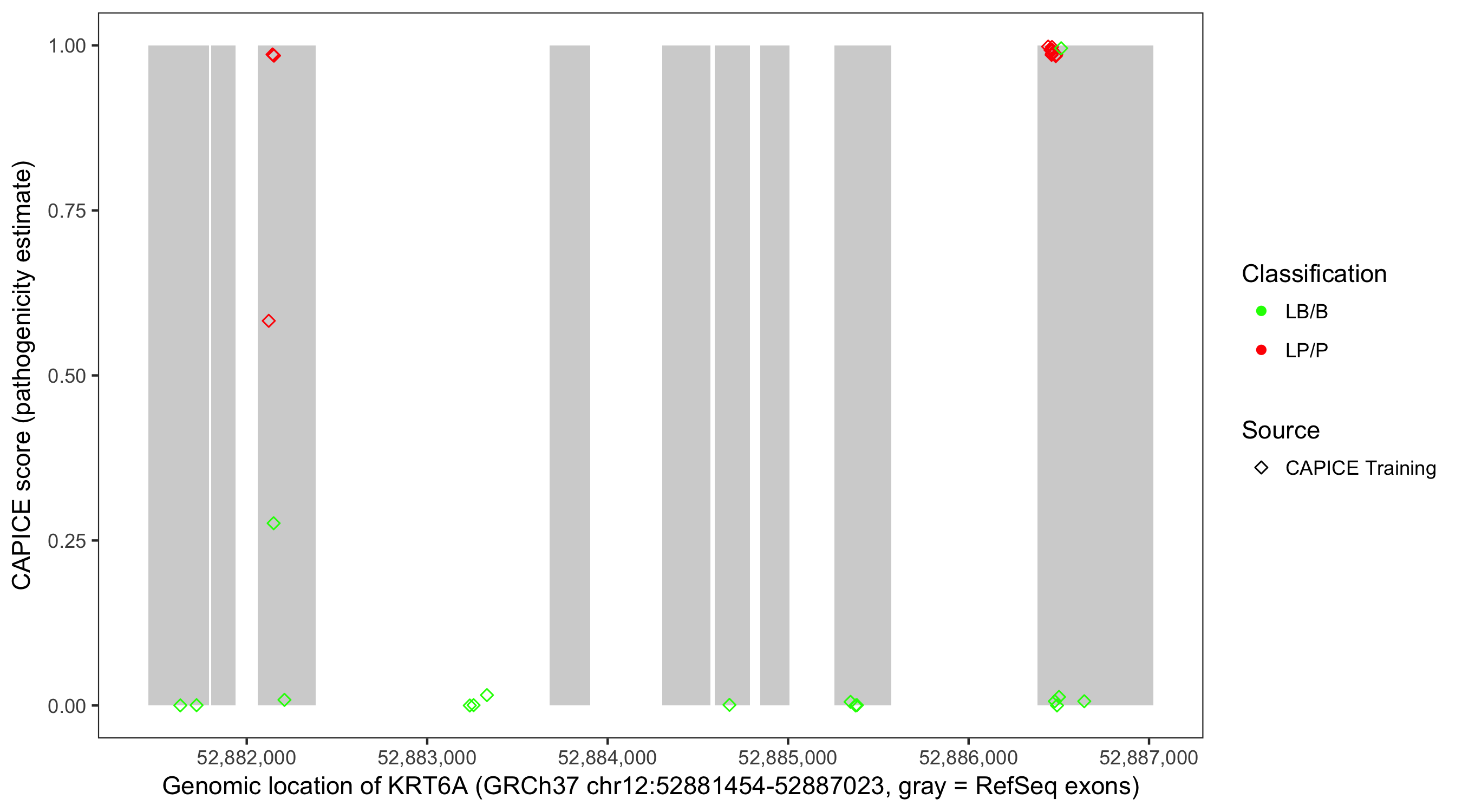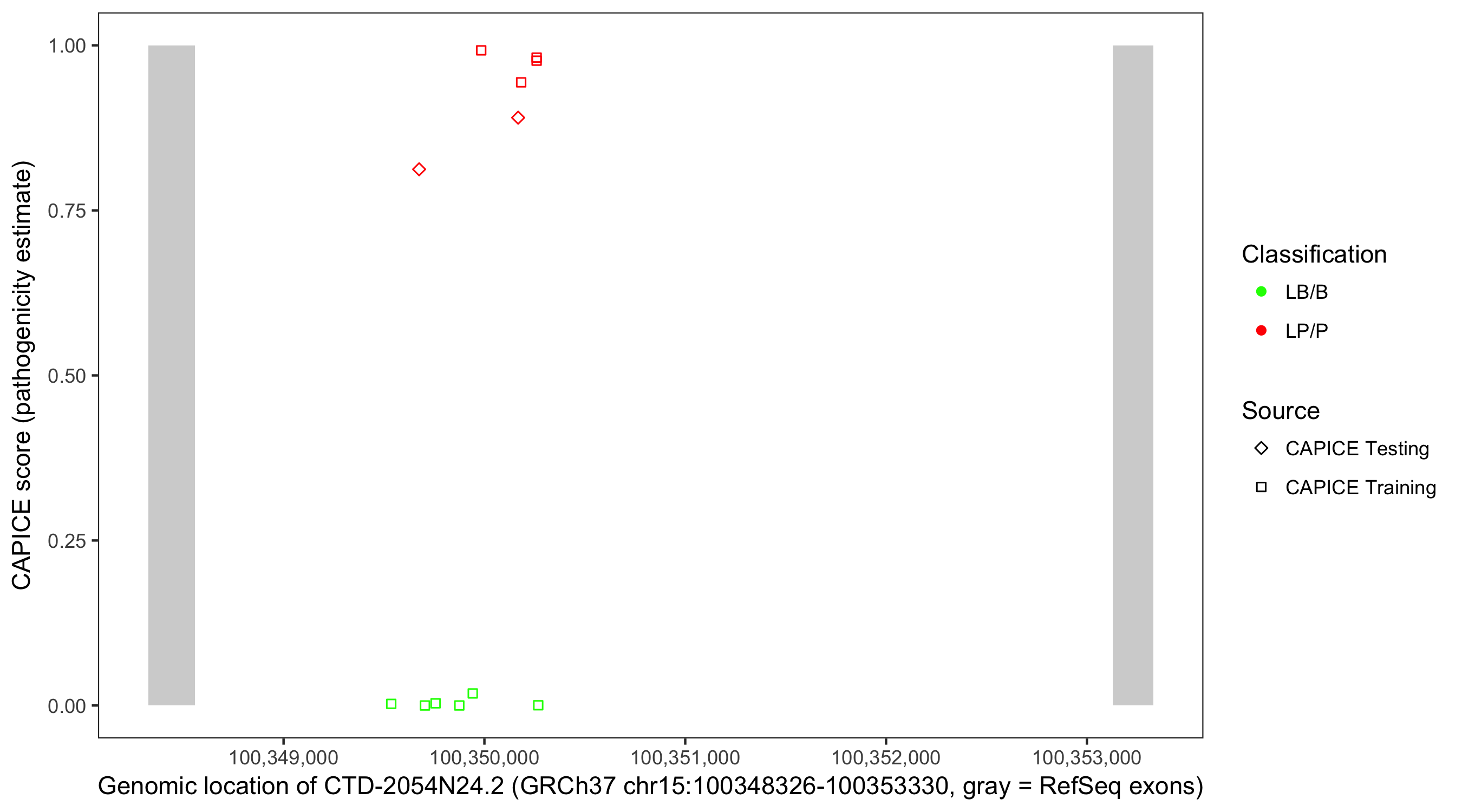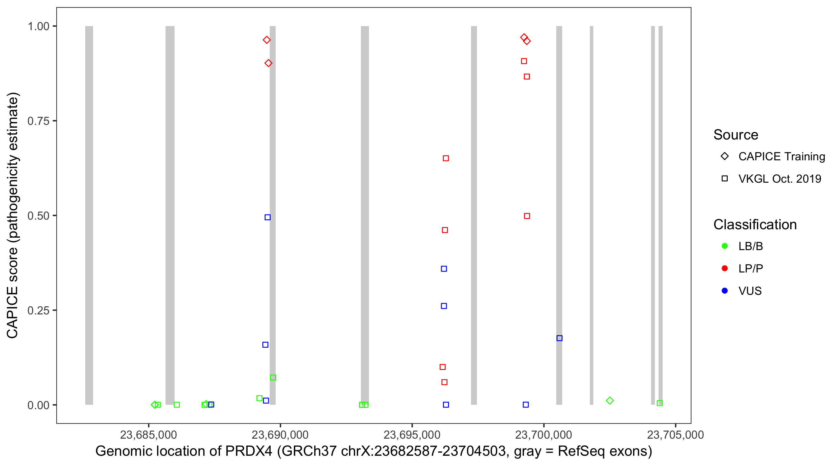 Shown are CAPICE train/test variants plus VKGL Oct 2019.